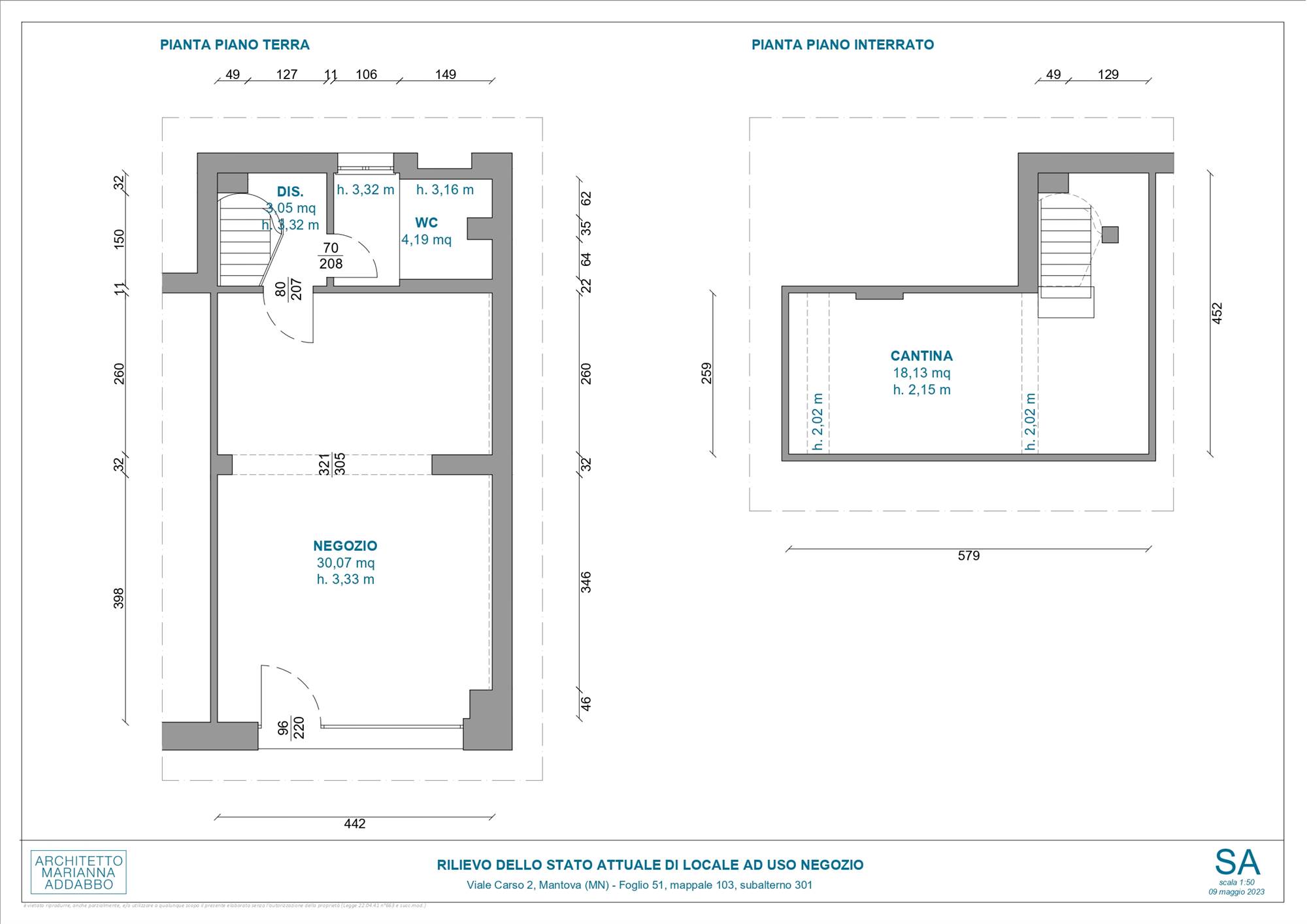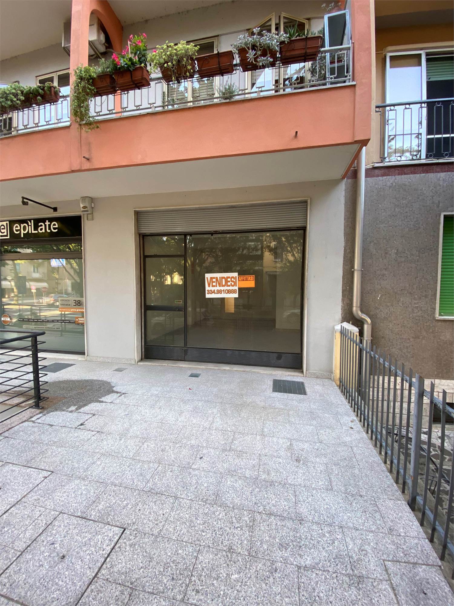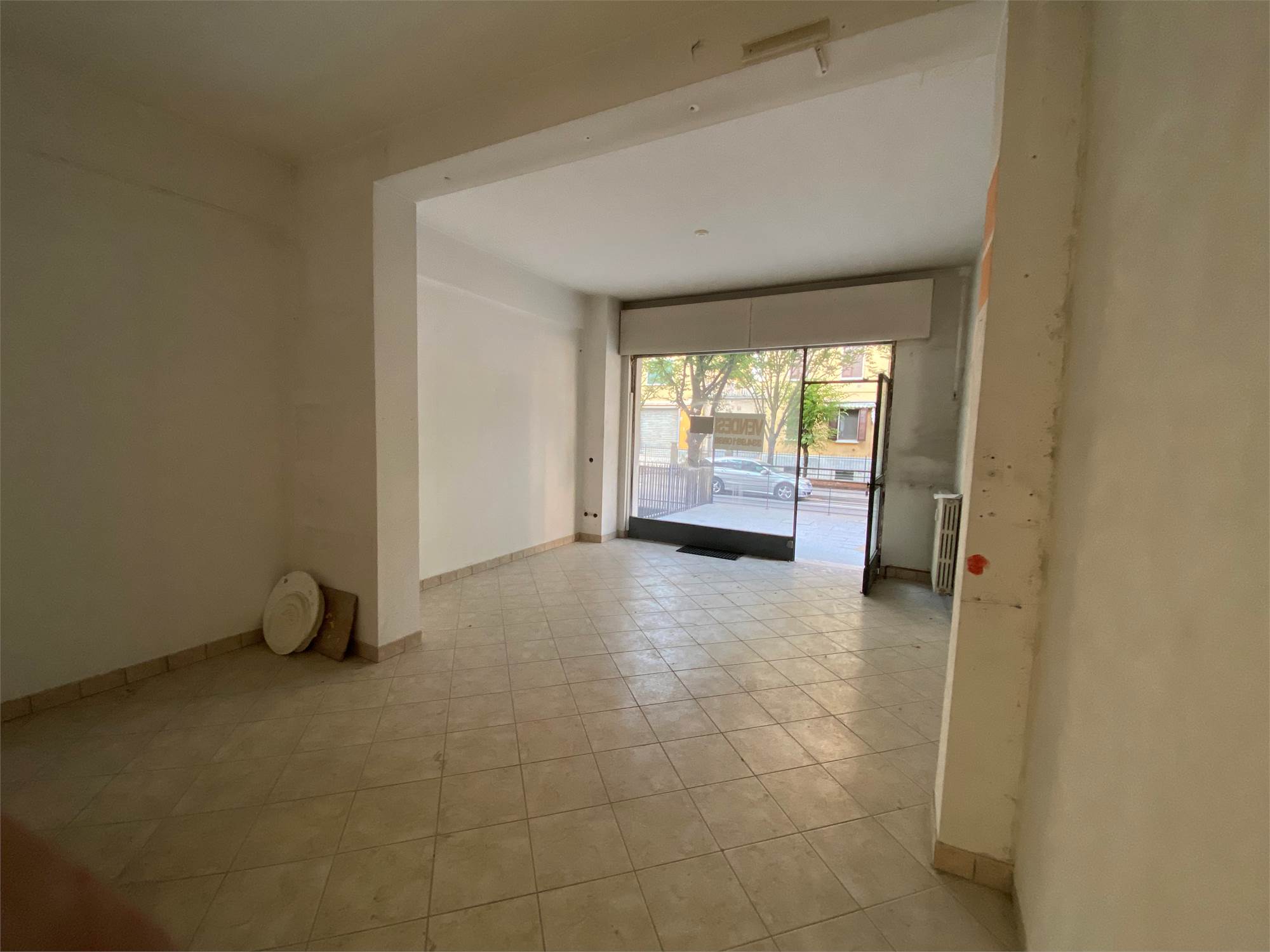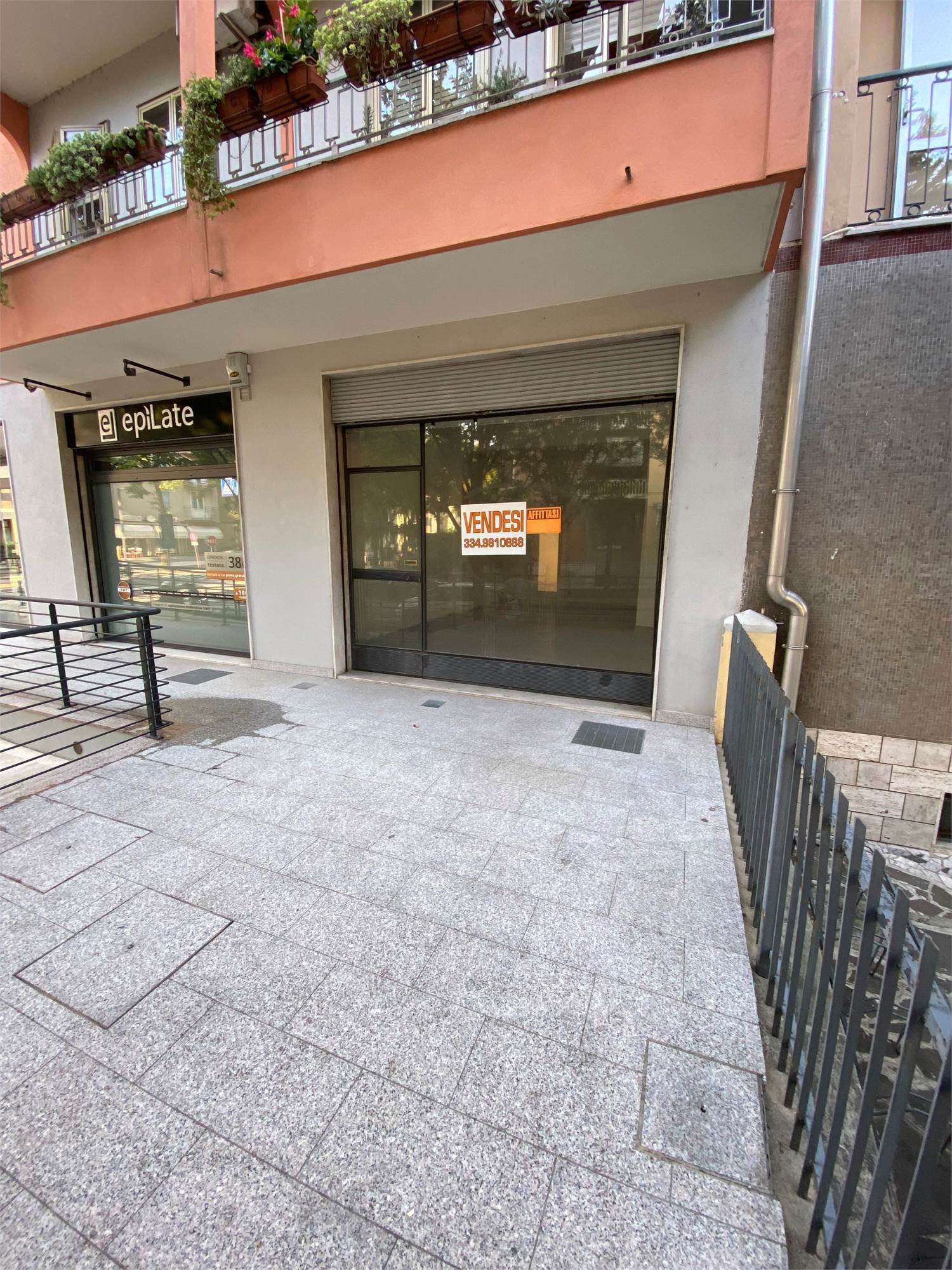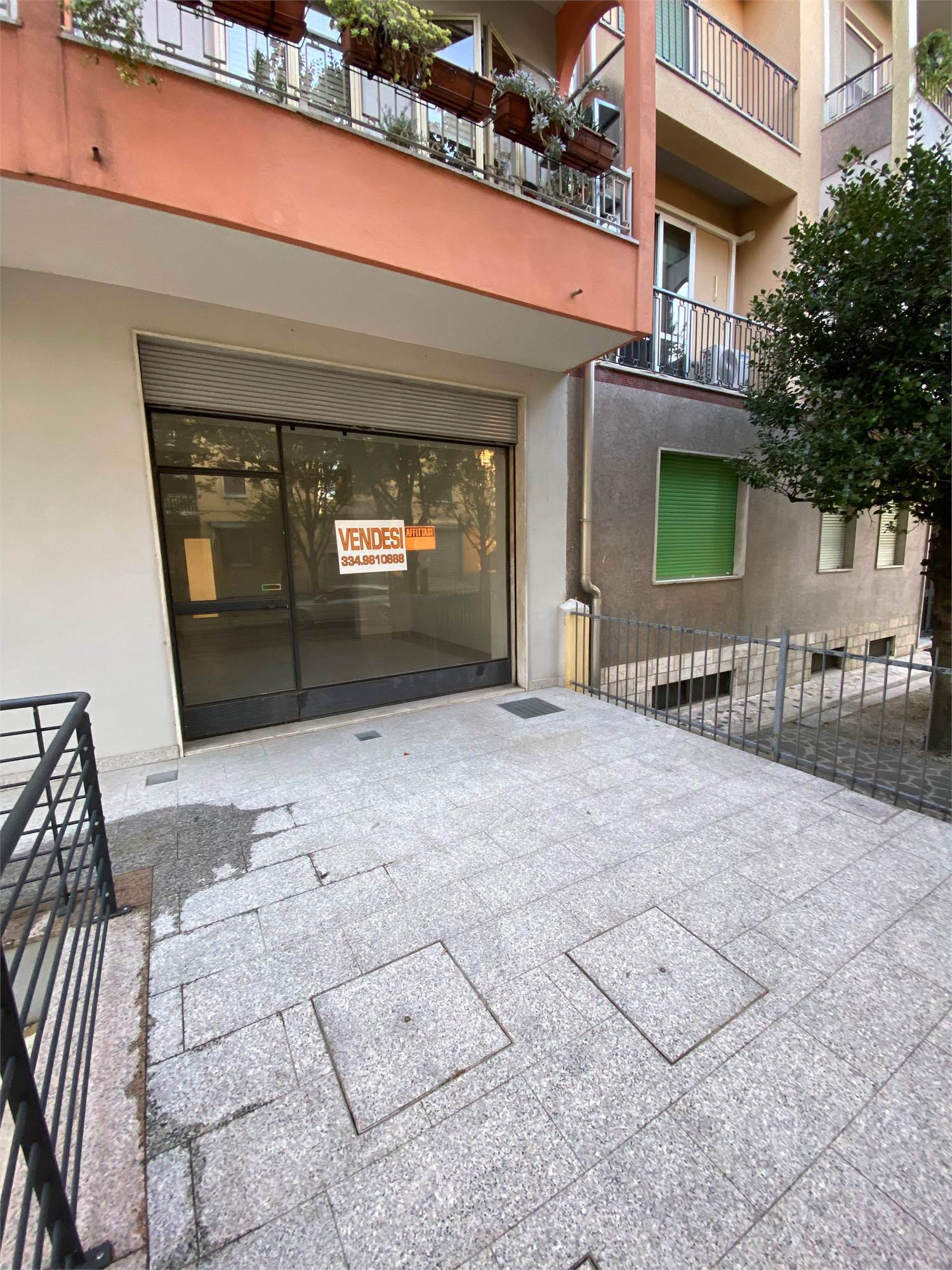 negozio dotato di una sola vetrina, bagno e con ampio magazzino al piano interrato . Si trova al piano rialzato di un condominio e per accedervi oltre alla scale vi è una rampa per i disabili. Il negozio si affaccia su un piccolo spiazzo di pertinenza. La zona è di ampio passaggio e offre possibilità di parcheggio.